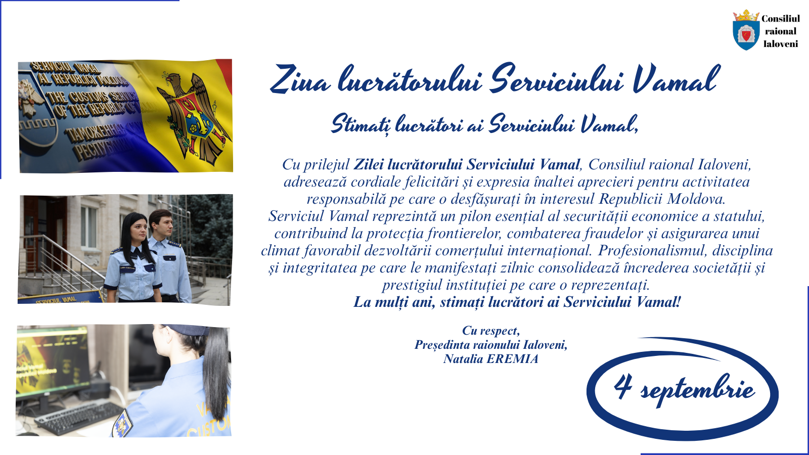 𝗠𝗲𝘀𝗮𝗷 𝗱𝗲 𝗳𝗲𝗹𝗶𝗰𝗶𝘁𝗮𝗿𝗲 𝗰𝘂 𝗼𝗰𝗮𝘇𝗶𝗮 𝗭𝗶𝗹𝗲𝗶 𝗹𝘂𝗰𝗿𝗮̆𝘁𝗼𝗿𝘂𝗹𝘂𝗶 𝗦𝗲𝗿𝘃𝗶𝗰𝗶𝘂𝗹𝘂𝗶 𝗩𝗮𝗺𝗮𝗹 – 𝟰 𝘀𝗲𝗽𝘁𝗲𝗺𝗯𝗿𝗶𝗲