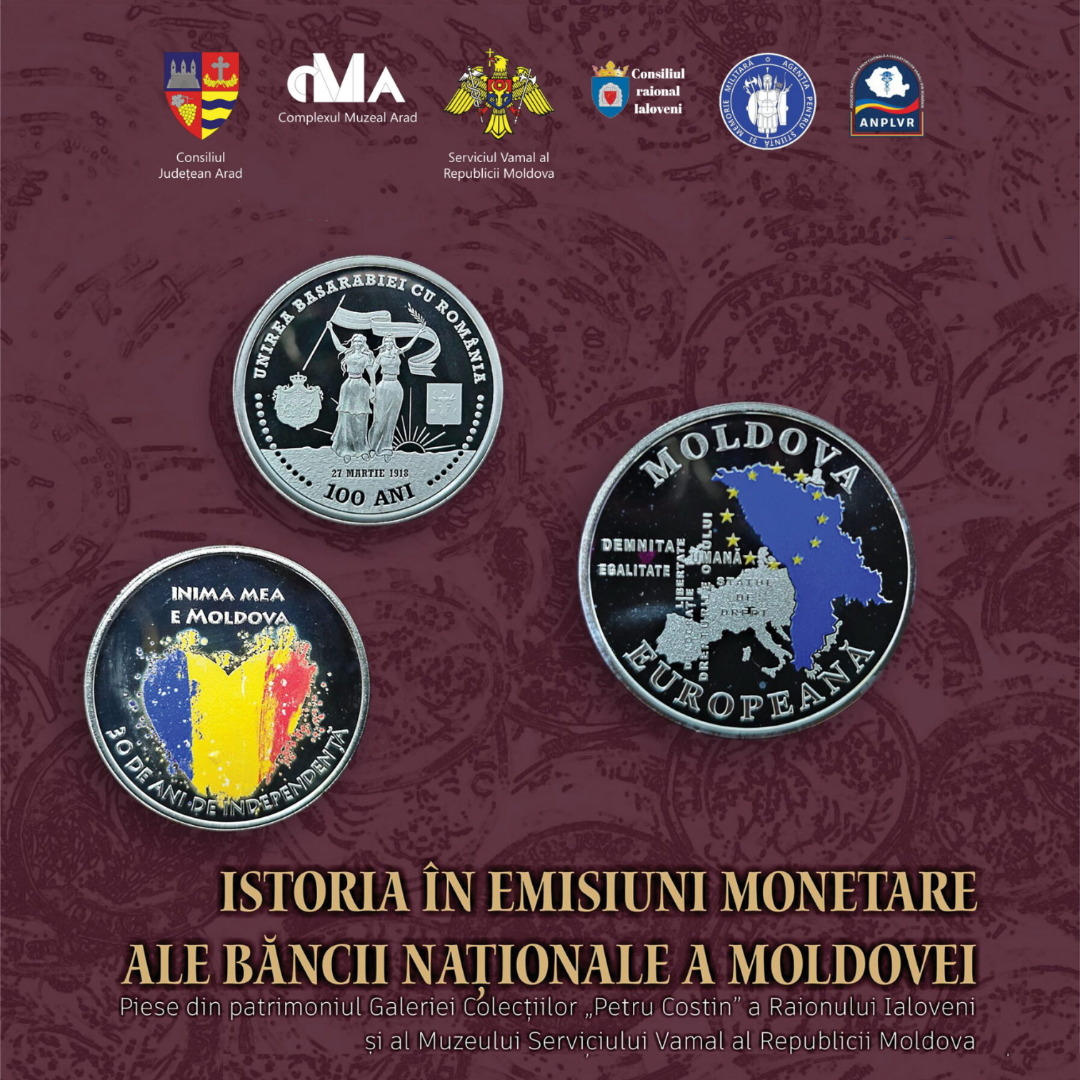 Expoziția de numismatică „Istoria în emisiuni monetare ale Băncii Naționale a Moldovei. Piese din patrimoniul Galeriei Colecțiilor Petru Costin a Raionului Ialoveni și al Muzeului Vamal al Republicii Moldova” oferă publicului ocazia de a descoperi, prin intermediul acestor emisiuni monetare de colecție, legăturile culturale și istorice profunde dintre România și Republica Moldova. Aceasta va rămâne deschisă la Complexul Muzeal Arad (Palatul Cultural – Piața George Enescu 1, intrarea dinspre Parcul Copiilor) până la data de 22 ianuarie 2026.