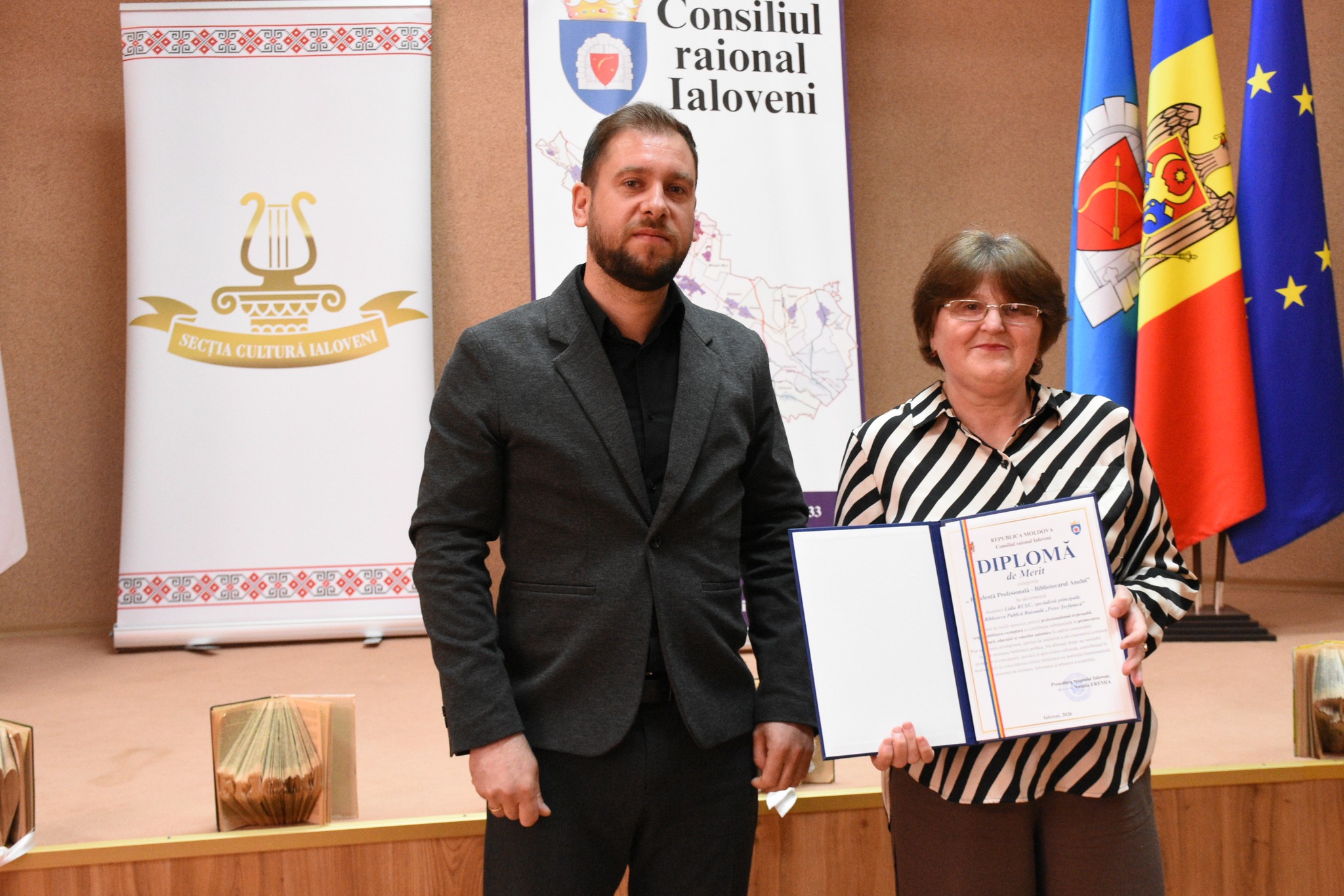 Cu acest prilej, din partea Consiliului raional Ialoveni, bibliotecarii au fost distinși cu diplome de recunoștință pentru meritele deosebite și aportul substanțial adus la promovarea culturii, educației și valorilor naționale în comunitate. De asemenea, aceștia au primit în dar albumul ,,Raionul Ialoveni – 45 de ani” și cartea fotografului Andrei Mardari „Trepte în zbucium”, lucruri care vor completa rafturile bibliotecilor sătești și școlare.